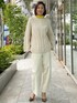 【着用サイズ】タートル:9号 ニット:9号 パンツ:9号 タートルレイヤードコーデ。ケーブル柄が可愛いニット。ワントーンコーデにイエローのタートルをレイヤード。トレンド感が更に出るのでおすすめです!