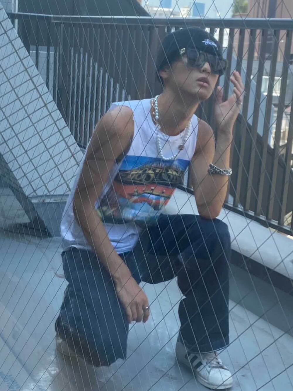 モデルをやらしてもらった時のスタイリングです!アクセサリーとサングラスがいい味を出していてニット帽があるかないかでまた変わってきます!まだまだ夏楽しみましょ!