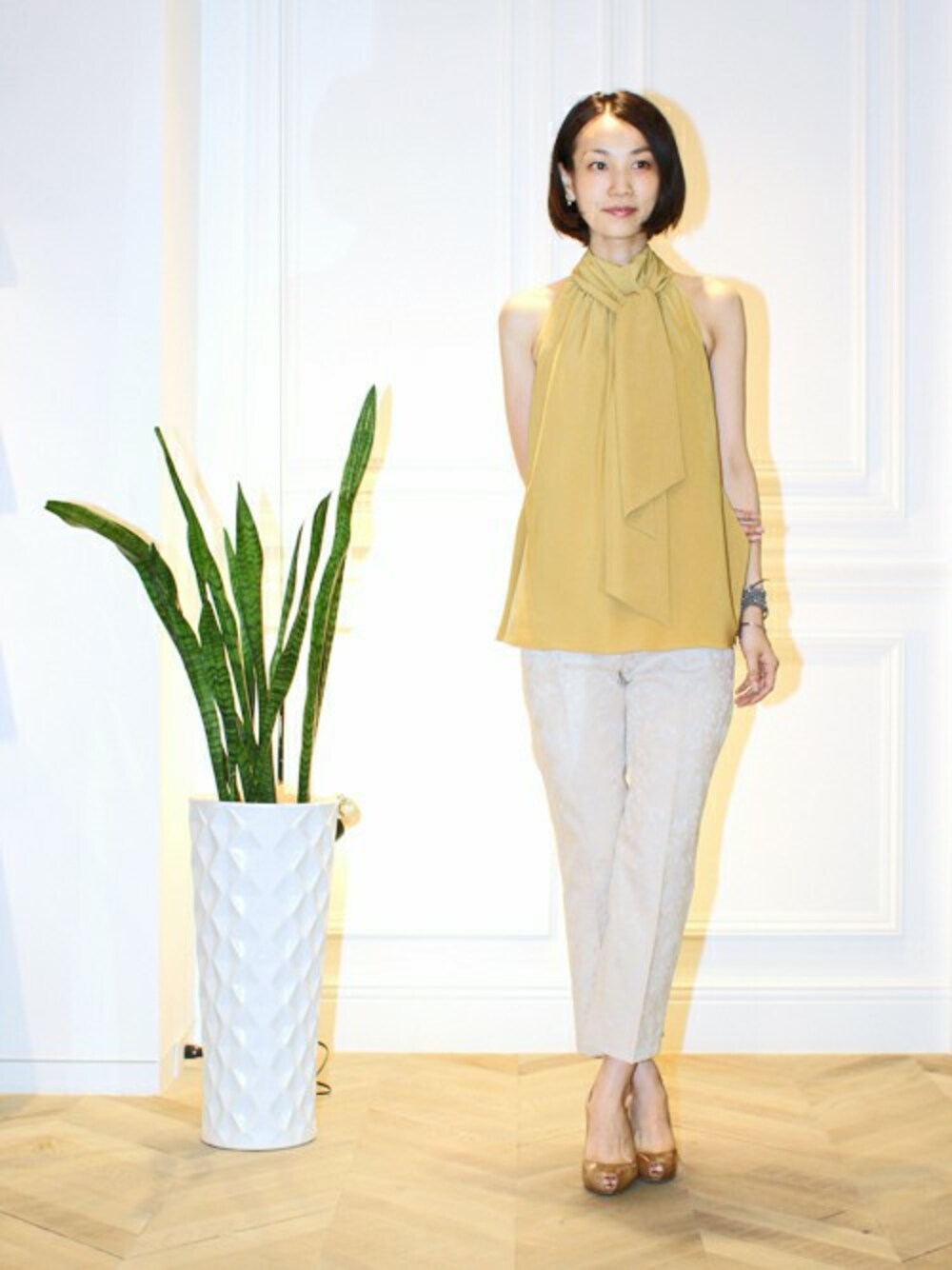 EFFE BEAMS デミルクスビームス銀座 ショップスタッフ ボリュームのあるタイはリボン結びにもできる長さです。フェミニン気分の時はリボン結び、クールな気分の時はリボンにしないで、一度結びですっきりと♪ 裾に向かってフレアなシルエットでボディーラインを気にする事なく着られます。 ショップブログもご覧ください。 http://www.beamsshopblog.jp/demi-ginza/34808