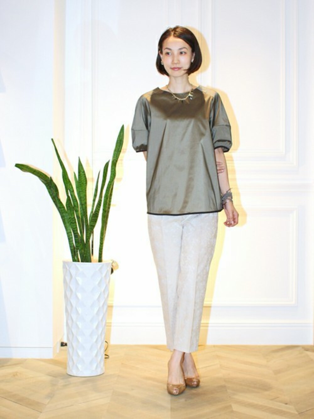EFFE BEAMS デミルクスビームス銀座 ショップスタッフ 程良い光沢感のブラウスは、華やかな雰囲気です。ジャカード織りのクロップドパンツを合せて上品なコーディネートの出来上がり♪ ショップブログもご覧ください。 http://www.beamsshopblog.jp/demi-ginza/34808