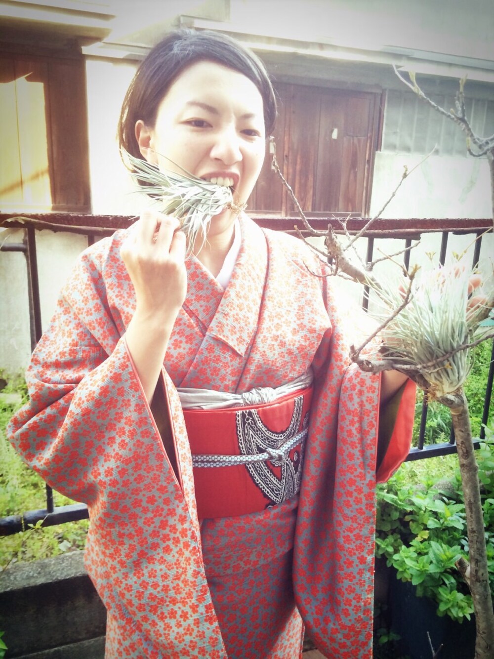 グレーに朱色の梅柄の着物に、朱色っぽい帯を合わせて全身朱色。 帯揚げはグレーにしました。 着物カフェ「食堂×植物エッフェ」やってます。 営業日:毎週水曜日と木曜日 横浜市南区井土ヶ谷下町28-13
