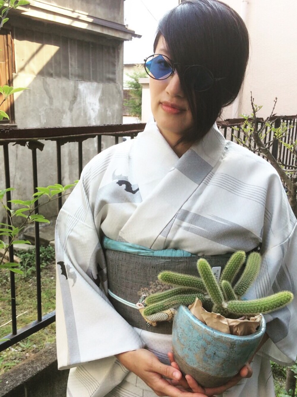 食堂×植物エッフェきのこ先生の浴衣を使ったコーディネート