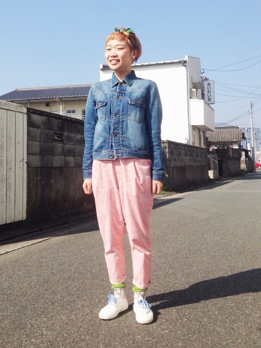 ポカポカ陽気。 こんな日は仕事放棄して 散歩に行きたい ジージャンはリプシム パンツはネネット 靴は無印 頭に巻いたスカーフは古着 先輩があたしのイメージで 作ってくれたイヤリング。 「とりあえずカラフル」 褒め言葉として受け止めます(^O^)♪