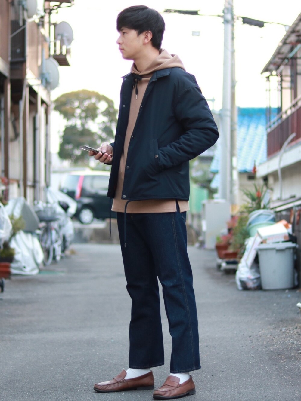 ネイビー✖︎ブラウン ネイビーをメインにしてワンポイントでブラウンを合わせました☺️ ジーンズ久しぶりに履いた👖 たまには良いね🤨 Instagram→@egaaaa.182