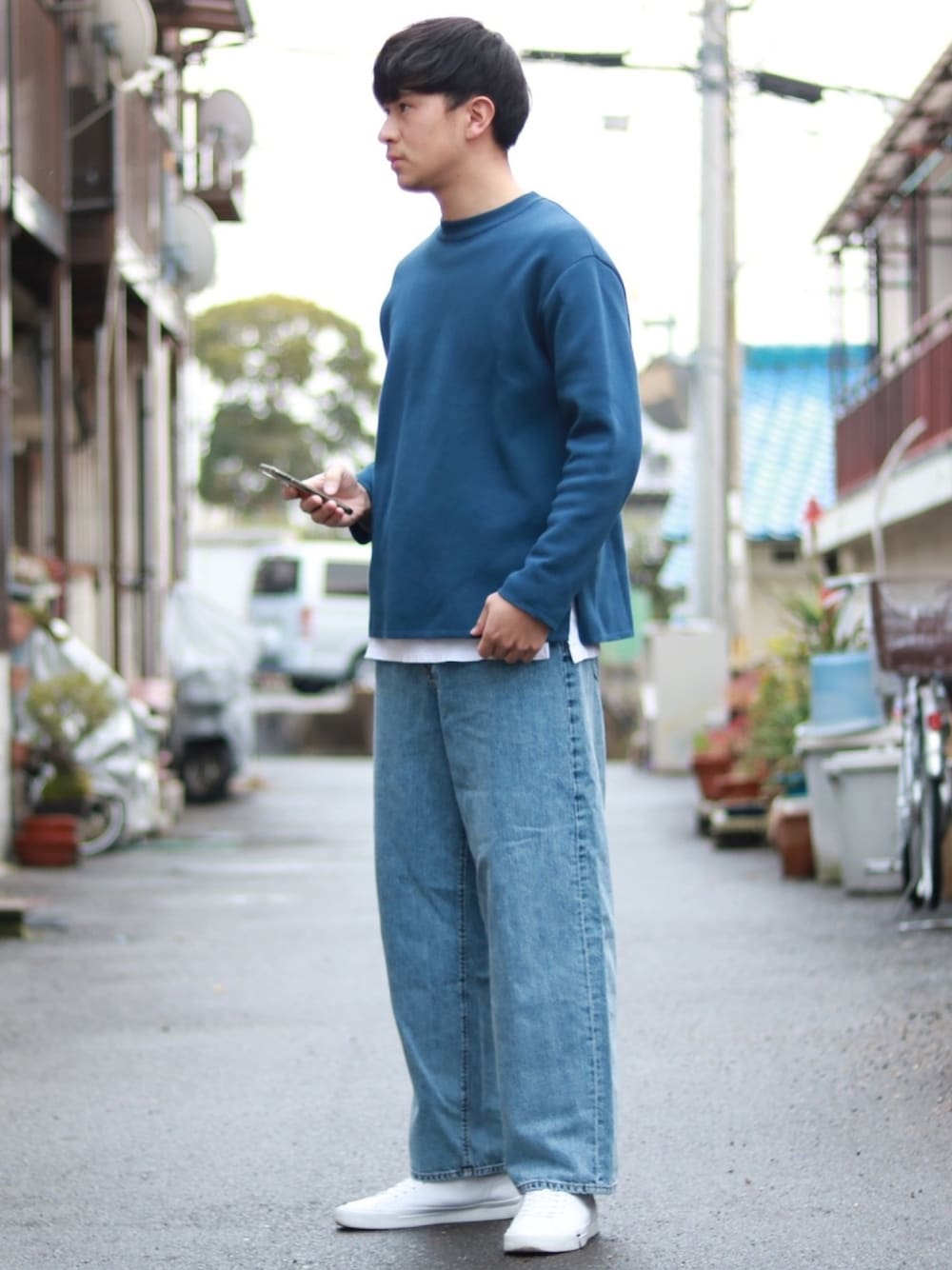 青✖️白 今回のコーデは自分的には珍しい青だけで組み合わせました🧐 前はニット結構着てたけど、最近はスウェットばっか着とるな🤔 Instagram→@egaaaa.182