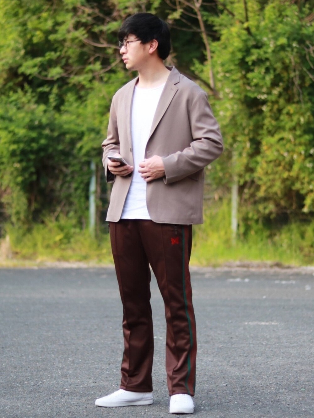 ブラウン✖︎ベージュ 今回はきれいめカジュアルで組み合わせました。 白を入れる事で清潔感UP‼️ jacket L pants L shoes 27.5㎝ Instagram→@egaaaa.182