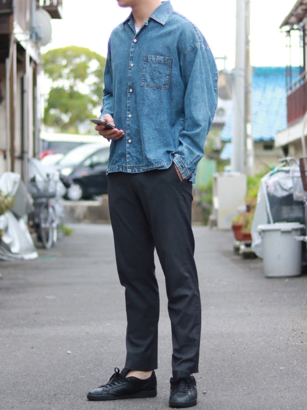 青✖︎グレー 今日はきれいめカジュアルで組み合わせました。 tops L pants L shoes 28㎝ Instagram→@egaaaa.182