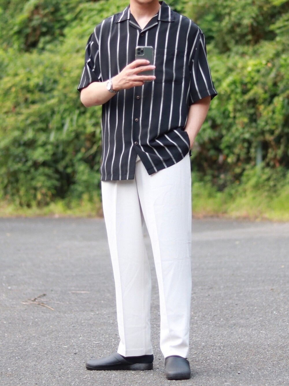 モノトーンコーデ shirt Free pants XL sandal 28.5㎝ Instagram→@egaaaa.182
