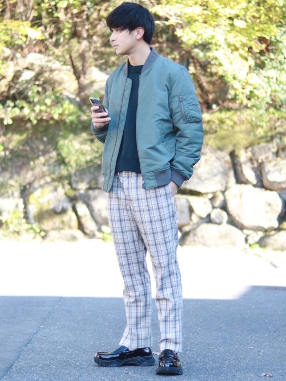 グリーン✖︎ベージュ カーキ✖︎ベージュ ○スリムストレートスリットパンツ(チェック) チェックの配色がめちゃくちゃ好きな配色‼️ サイドスリットも入ってて個性的でかわいいパンツです🥳 outer XL knit L pants XL shoes L Instagram→@egaaaa.182