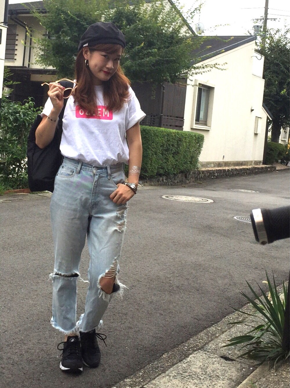 クラッシュデニム×白Tee CA4LAのキャスはお気に入り〜😍💗