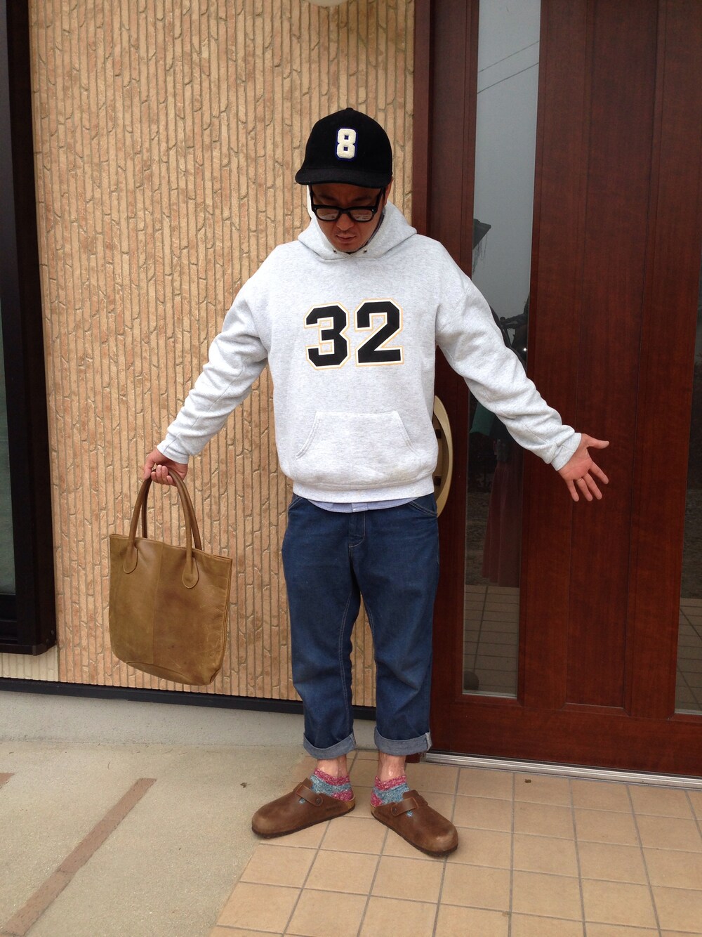 数字いっぱいコーデw キャップ cooperstown パーカー:used パンツ:johnbull シューズ:BIRKENSTOCK BOSTON バッグ:used