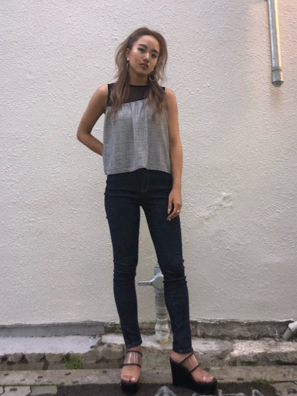 RIKOのタンクトップ「切替ドッキングノースリTOP」を使ったコーディネート