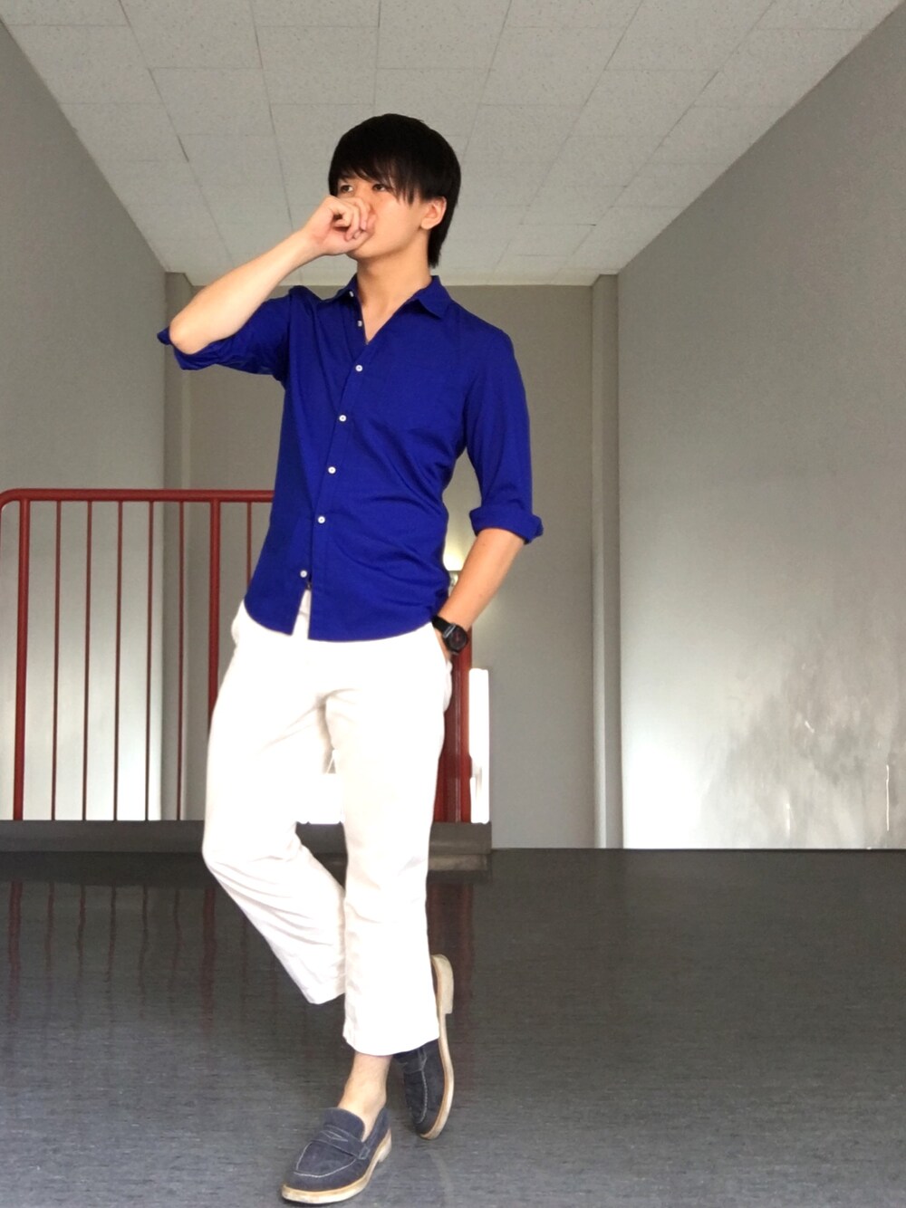 こんにちわTakuyaです_(:3」∠)_ いつもいいねやセーブありがとうございます!! 本日も暑いですねぇ(´・_・`) 今回は去年のコーデシリーズ第二弾! 去年は数よりも、いいものを少なく買ってましたからね(´Д` )まぁ高いなぁ 改めて思いますね…… 青と白の爽やかコーデ😏 そしてこのニコルのシャツ 薄いからすんごく涼しいし、着心地サイコー😇 下の白パンもこだわって、麻が入ってるから涼しいけど助けないようになってるという素晴らしい仕様( ̄▽ ̄) んで、ローファーでカチッと という今までにないほど色を前面に出してるコーデですね( ´ ▽ ` ) 自分で言うのもなんだけど…ものすごい爽やか😇 自分にはなかなか無いファッションなのでね…… まあ今日はこんなとこですね では👾