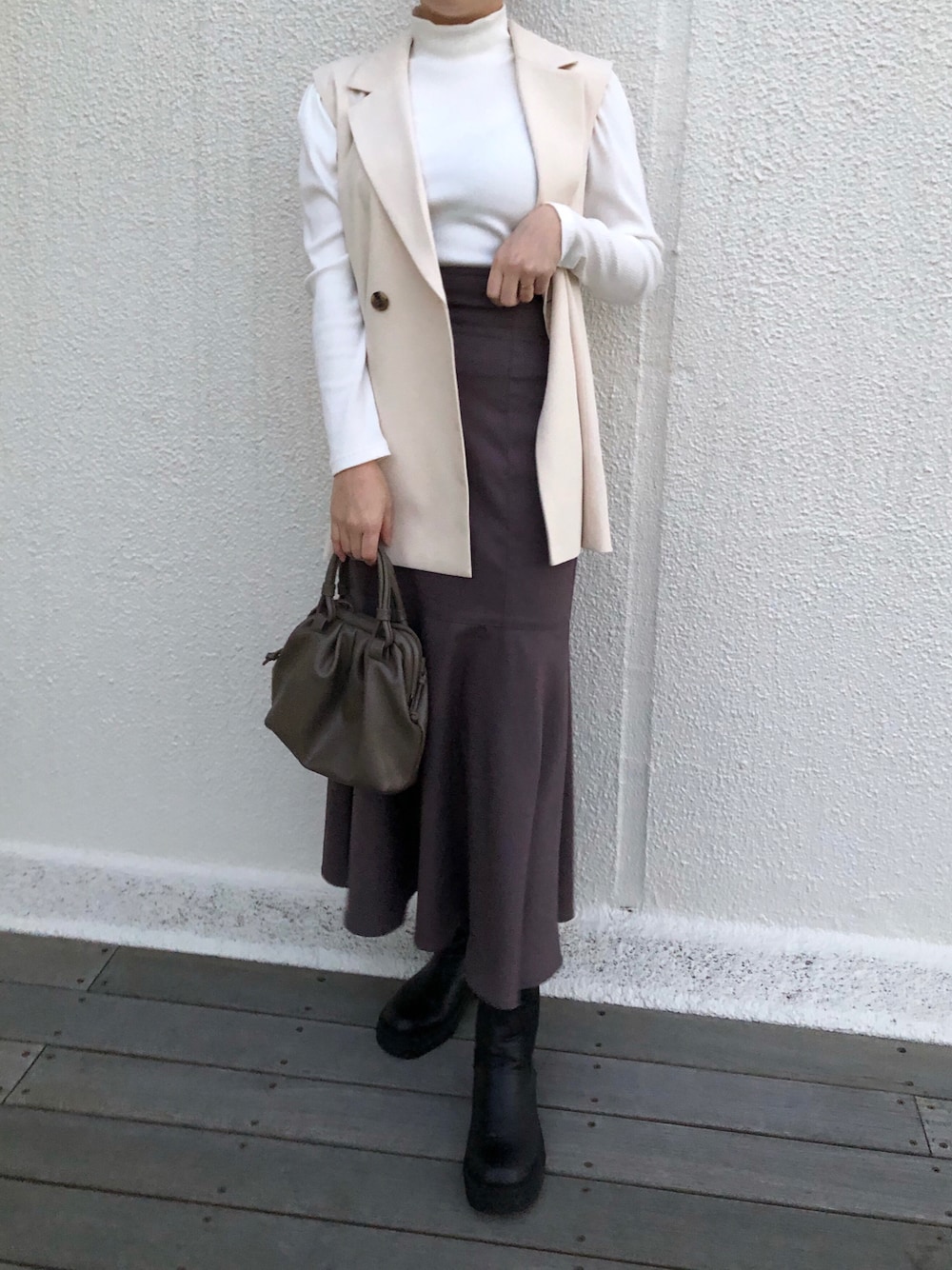 江口光代(one after another NICE CLAUP)のショルダーバッグ「フェイクレザーガマ口ショルダーバック」を使ったコーディネート