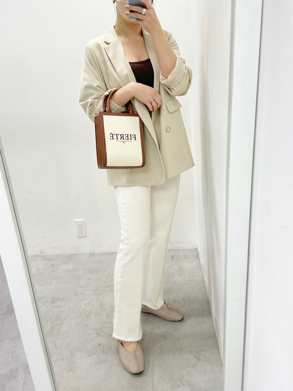 江口光代(one after another NICE CLAUP)のデニムパンツ「美シルエットのフリンジデニムパンツ」を使ったコーディネート