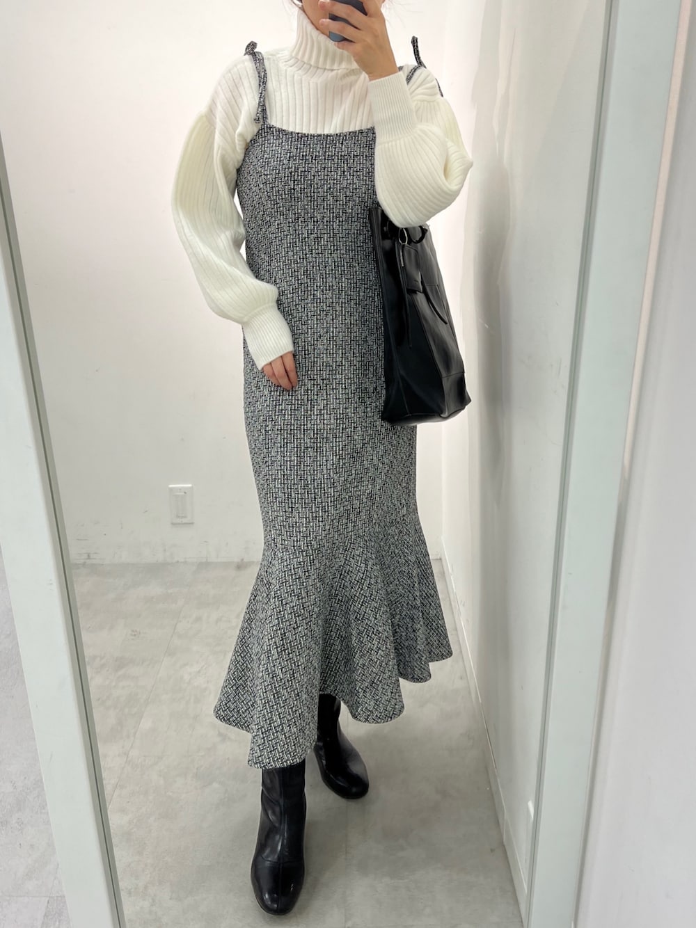 江口光代(one after another NICE CLAUP)のワンピース「【ZOZO限定リバイバル】マルチWAYハイネックニット+マーメイドキャミワンピースセット」を使ったコーディネート