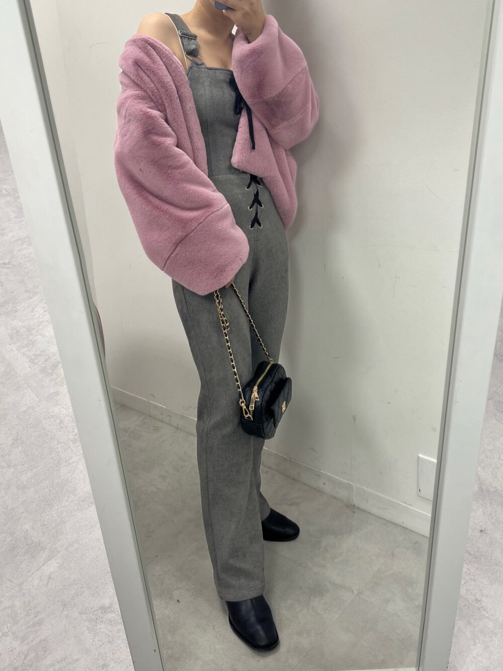 江口光代(one after another NICE CLAUP)のノーカラーコート「【Seemi】Seemi revivalショートファーコート」を使ったコーディネート
