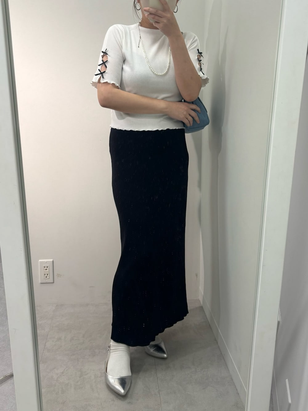 江口光代(one after another NICE CLAUP)のスカート「【15色展開】セルフカットリブロングタイトスカート」を使ったコーディネート