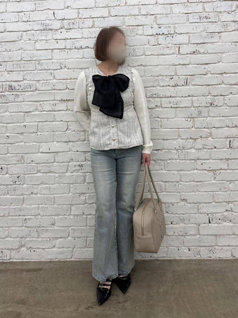 江口光代(one after another NICE CLAUP)のデニムパンツ「【選べる4サイズ展開】サイドカット美脚ビジューデニムパンツ」を使ったコーディネート