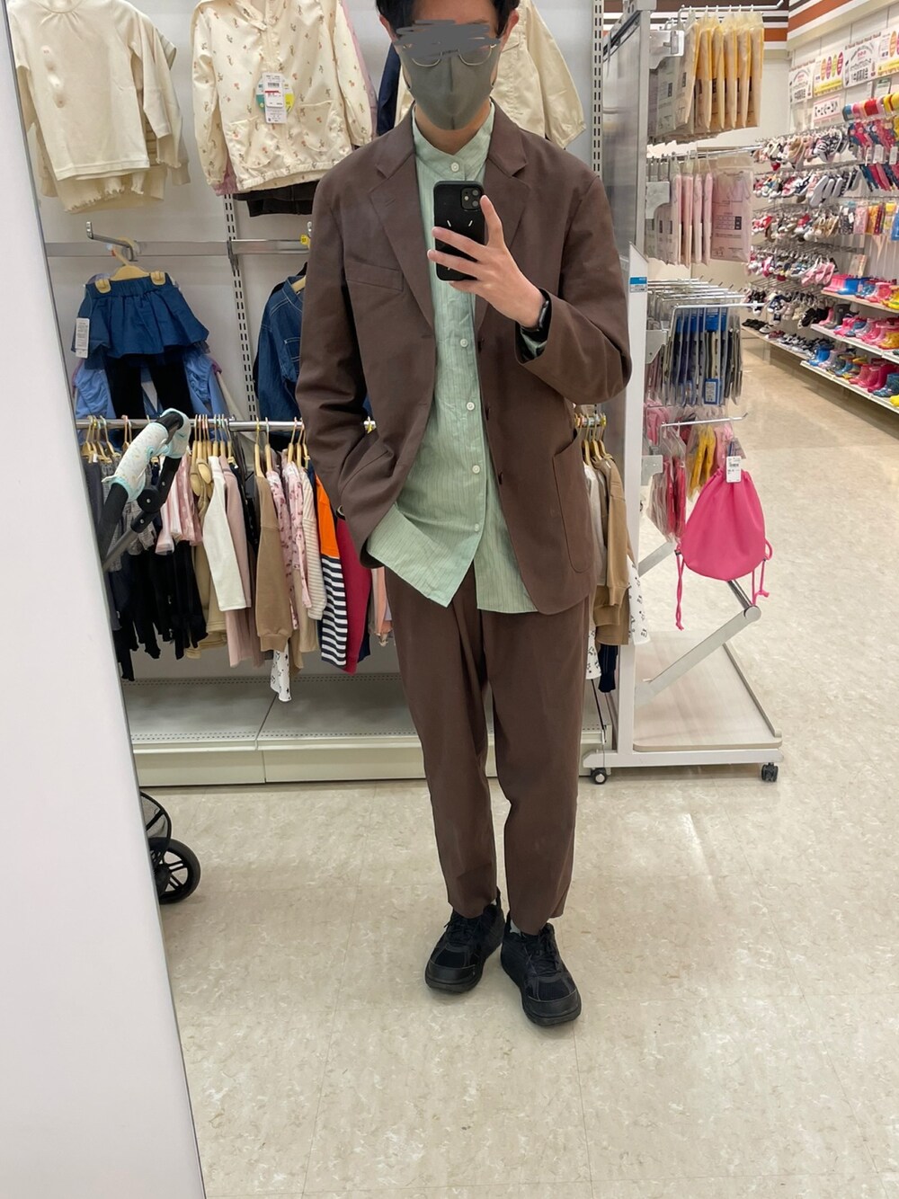 全身ユニクロユーコーデ。 ブラウンのジャケットはだいぶ値引きされて今も残ってるから、最初に買った身としては少し切ないです…。 グリーンのストライプシャツを合わせて春らしい爽やかさを意識しました。