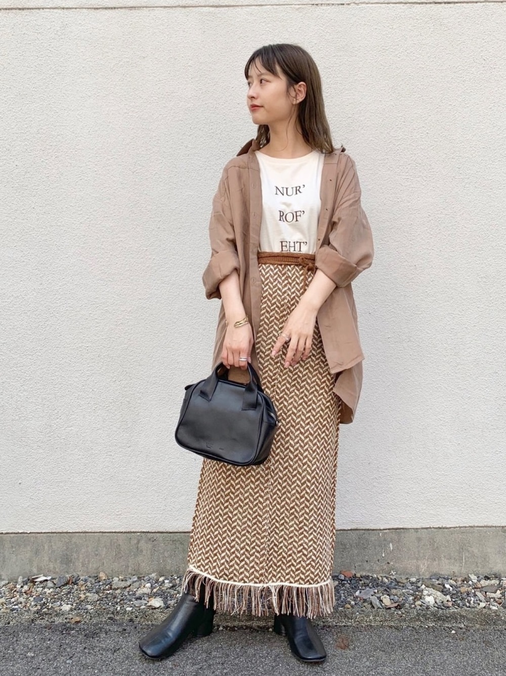 ベージュのワントーンコーデ 小物は黒でまとめるのがポイント Instagram→eguccho02