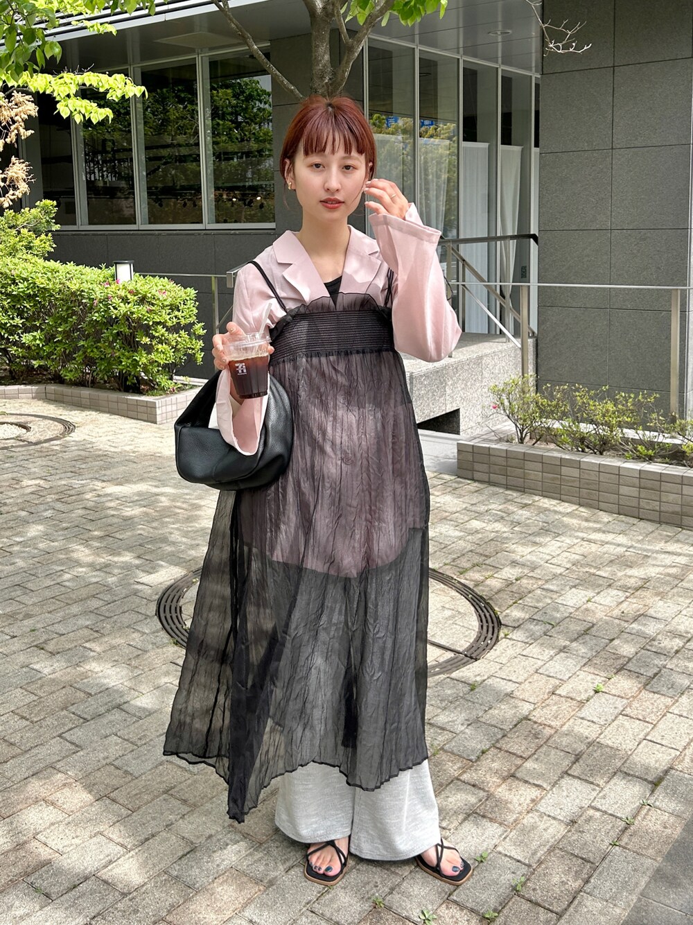 【スタッフレビュー】 重ね着がトレンドに。 いつも羽織るジャケットをインスタイルで着てみました! 骨格:ウェーブ パーソナルカラー:オータム 【tops】着用サイズ:フリー 着用カラー:ピンク マットなシアー感があり、夏のお出かけの羽織にはぴったりです。 袖がフレアなのもポイント! ナチュラルな落ち着いたピンクなので、イエベ秋の 方にもオススメなカラーです。 【bottom】着用サイズ:フリー 着用カラー:からかアイボリー 履きやすさ満点。着痩せパンツでもあり、シルエットがかなりきれいなフレアパンツです。 膝が抜けないのもオススメしたいポイント! さらっとした生地感なので、シーズンレスで幅広く使えますよ。 【onepiece】着用サイズ:フリー 着用カラー:ブラック 今年は必ず持っておいて良いチュールアイテム。 ワンピースですが、スカートでも使えるようになってます。 黒は特に着回しがしやすいカラーですよ! 2食害までも街もしちゃいそう。
