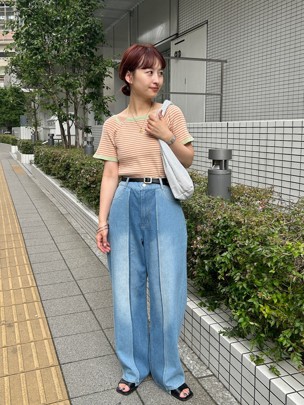 【スタッフレビュー】 カジュアルに小物でアクセントを足したコーデ。 骨格:ウェーブ パーソナルカラー:オータム 【tops】着用サイズ:フリー 着用カラー:ミント 華奢みせトップス。夏はどうしても暑いので一枚着で 可愛く着れるトップスも必要です。 タイトすぎないデザインで、インスタイルもしっかりできます。 アメスリのデザインが1枚でお出かけコーデの完成になりますよ! 【bottom】着用サイズ:1 着用カラー:ブルー パッチワークのデザインが珍しい! 生地も柔らかく、厚すぎないので夏にもぴったりです。 157cmで3cmぐらいのヒールを履いてちょうど良い長さです! お尻周りにもゆとりがあるストレートパンツなのでインスタイルが 安心してできるパンツですよ! 【bag】着用カラー:シルバー ラメが細かく、キラキラが可愛い! マチもついてるので見た目以上に中身は入れていただけます。 マルシェバッグですが、しっかり肩掛けできるのもおすすめポイントです!