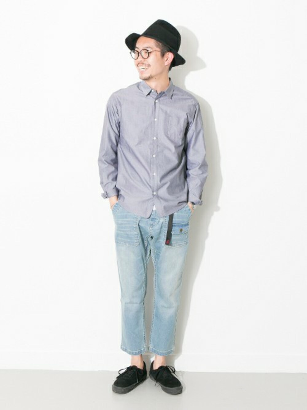 エグチのデニムパンツ「Mt.Design3776 Gramicci別注Mountain Pants」を使ったコーディネート
