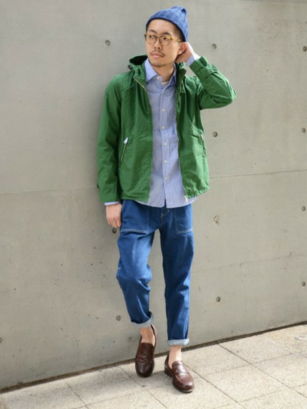 人気のカラージップパーカーとDenim9分丈パンツを合わせた、定番コーディネート。