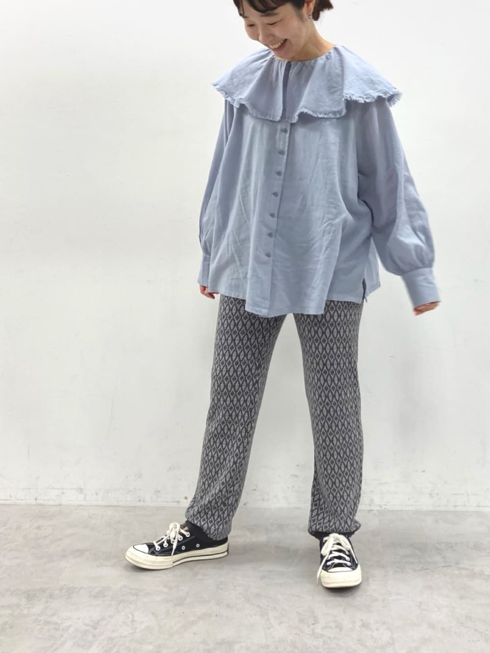 staff E(pualcecin)のシャツ/ブラウス「襟/ビッグカラーガーゼブラウス」を使ったコーディネート