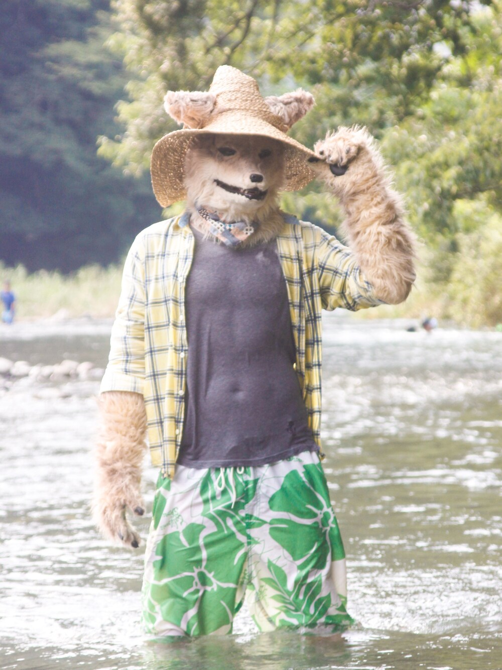 グレーのシャツをベースにイエローのシャツとグリーンの水着を組み合わせて夏っぽく着てみました!