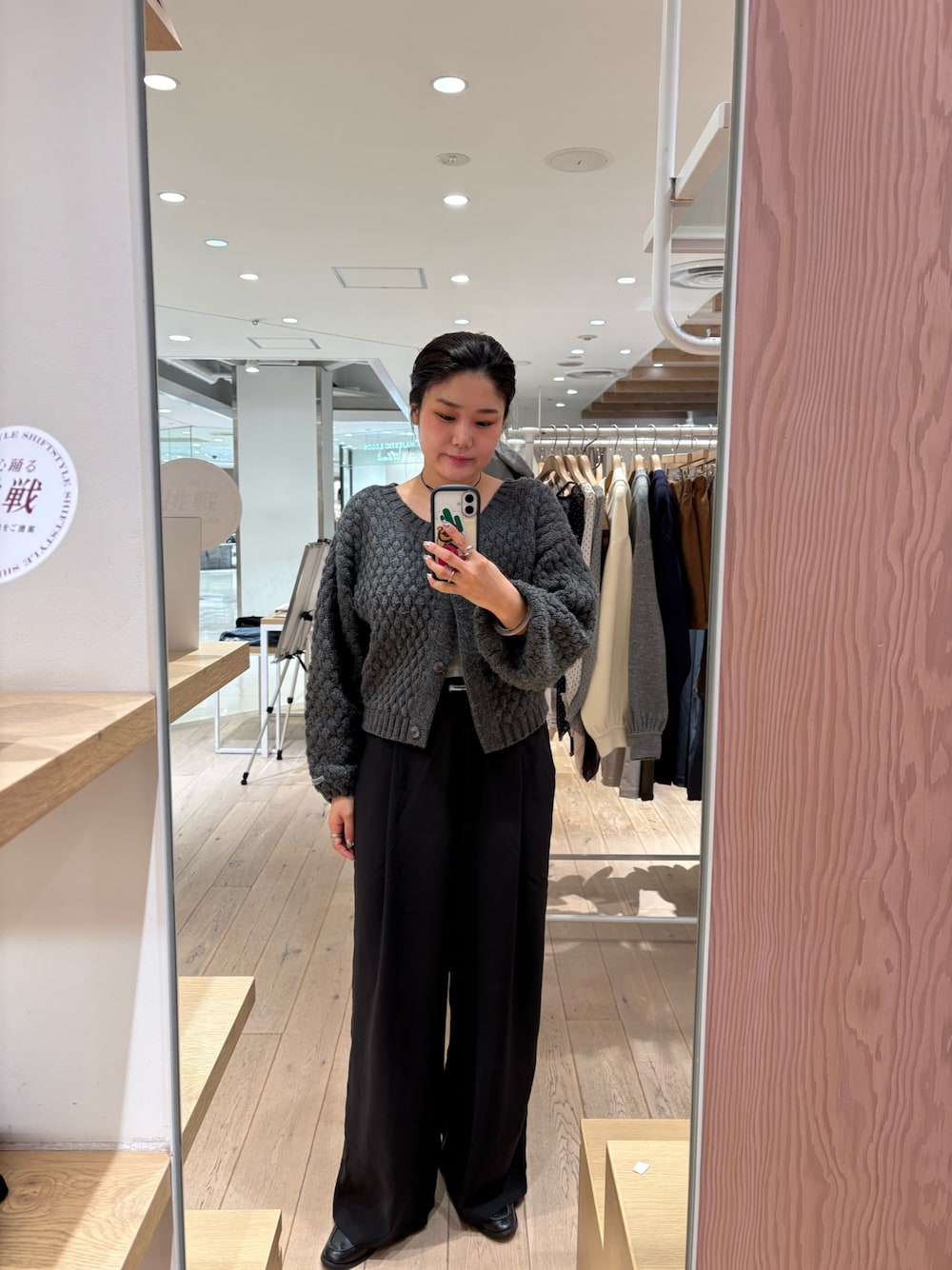 たけえみ(mystic)のカーディガン/ボレロ「【お気に入り4万6千人突破!WEB限定カラーPNK/YEL】ポコポコニットカーディガン」を使ったコーディネート