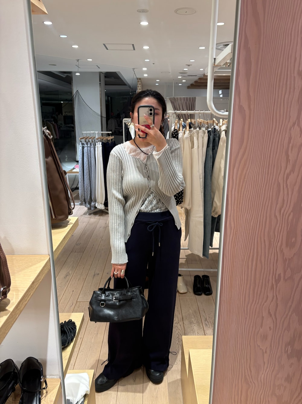 たけえみ(mystic)のカーディガン/ボレロ「【リブ素材で伸縮性◎/6色展開】ラウンドスリットリブカーディガン」を使ったコーディネート