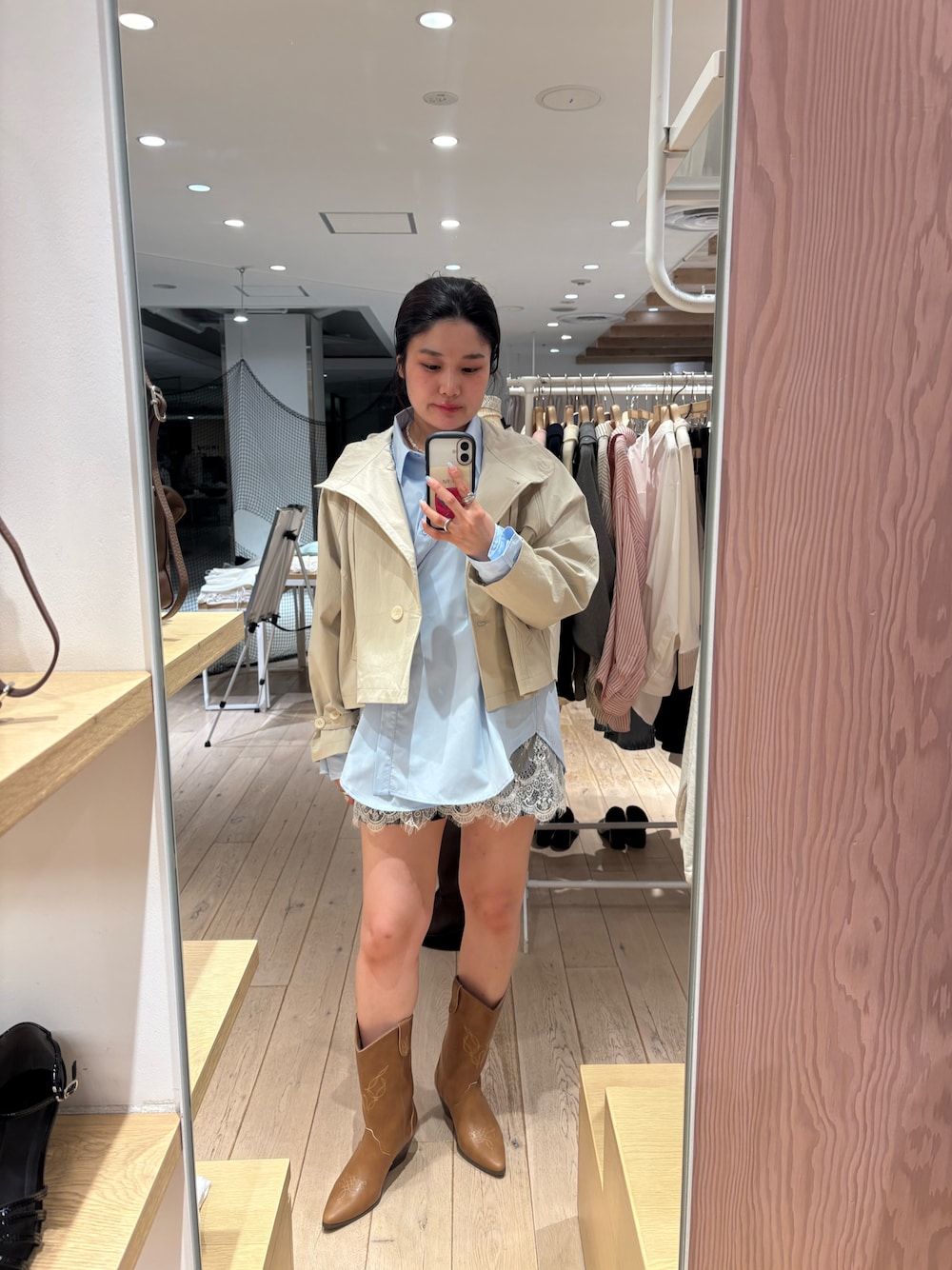たけえみ(mystic)のシャツ/ブラウス「ボタンレイヤードBIGシャツ」を使ったコーディネート