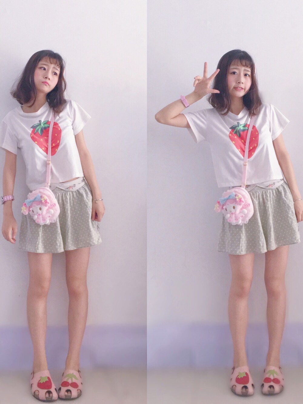 夏天标配:) 草莓T非常显瘦减龄,melody的包包超级可爱。