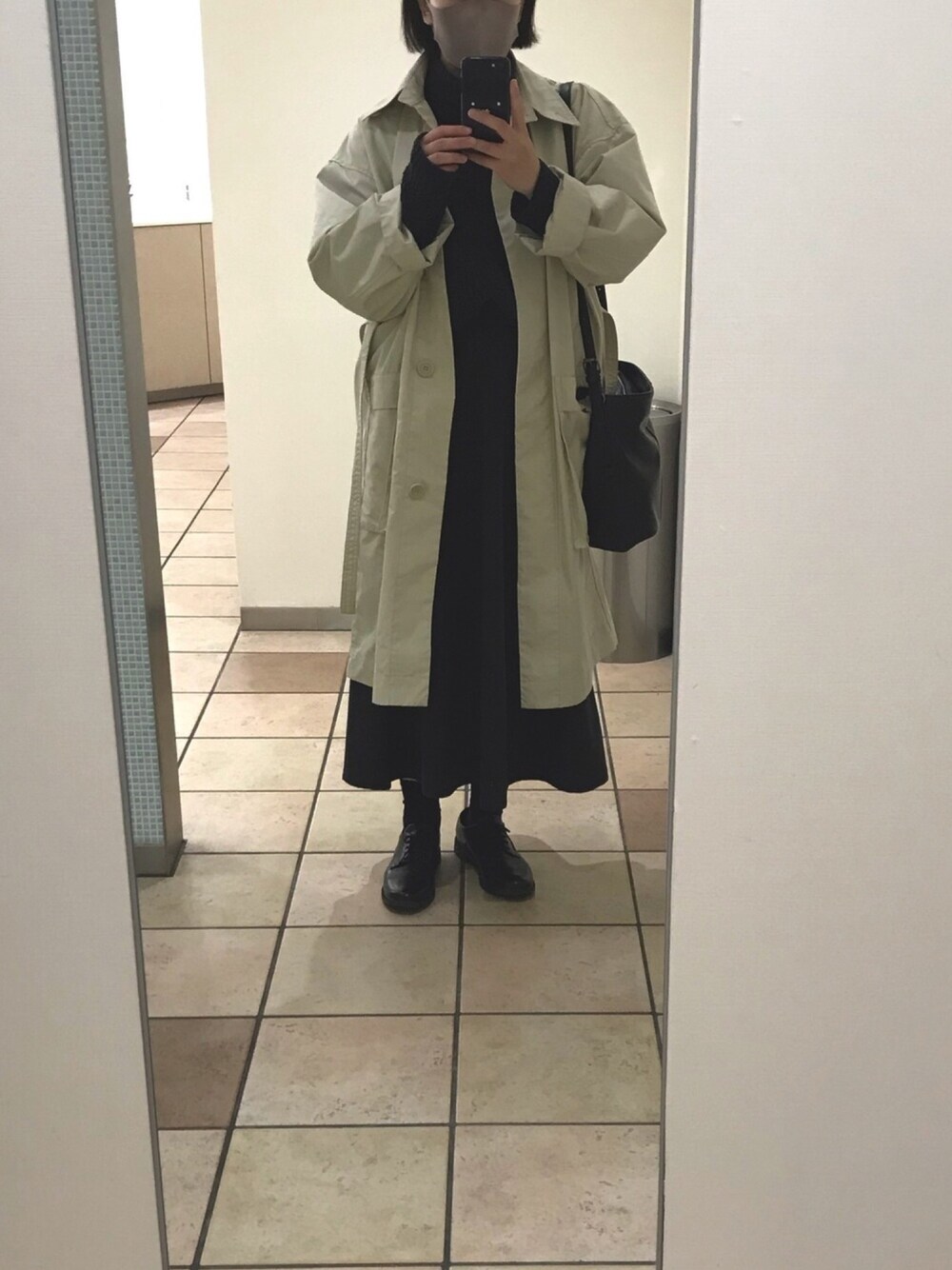 今日はクリスマスですね🎄 遠くて分かりにくいけど、ネイビーのタートルネックとグレーのスカート。