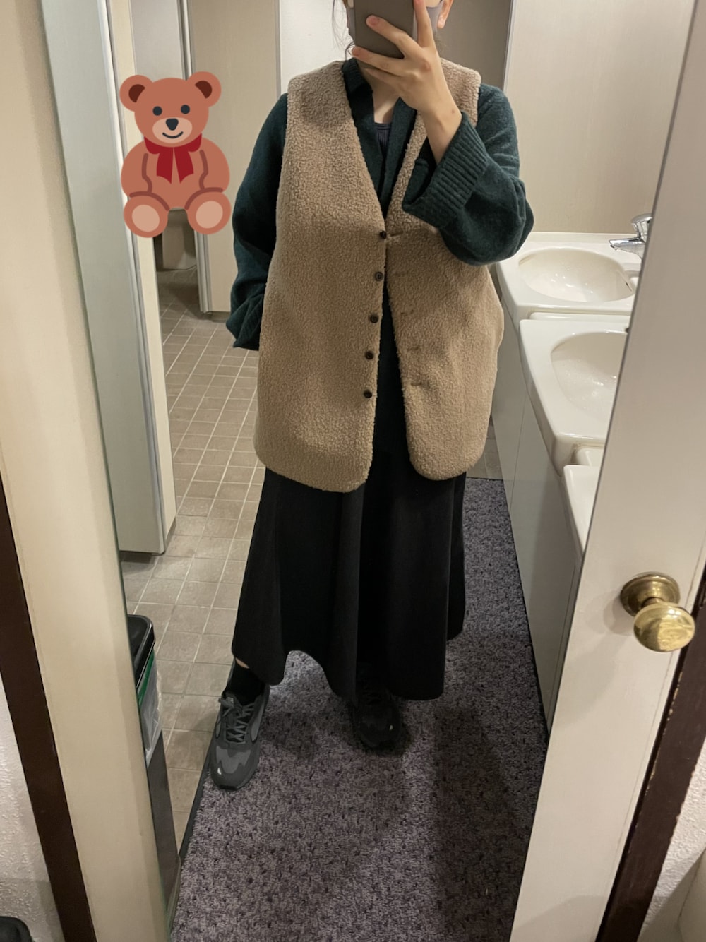 お久しぶりです🧸 この前の。 ボアベストは一目惚れで購入。 あたたかい♨️
