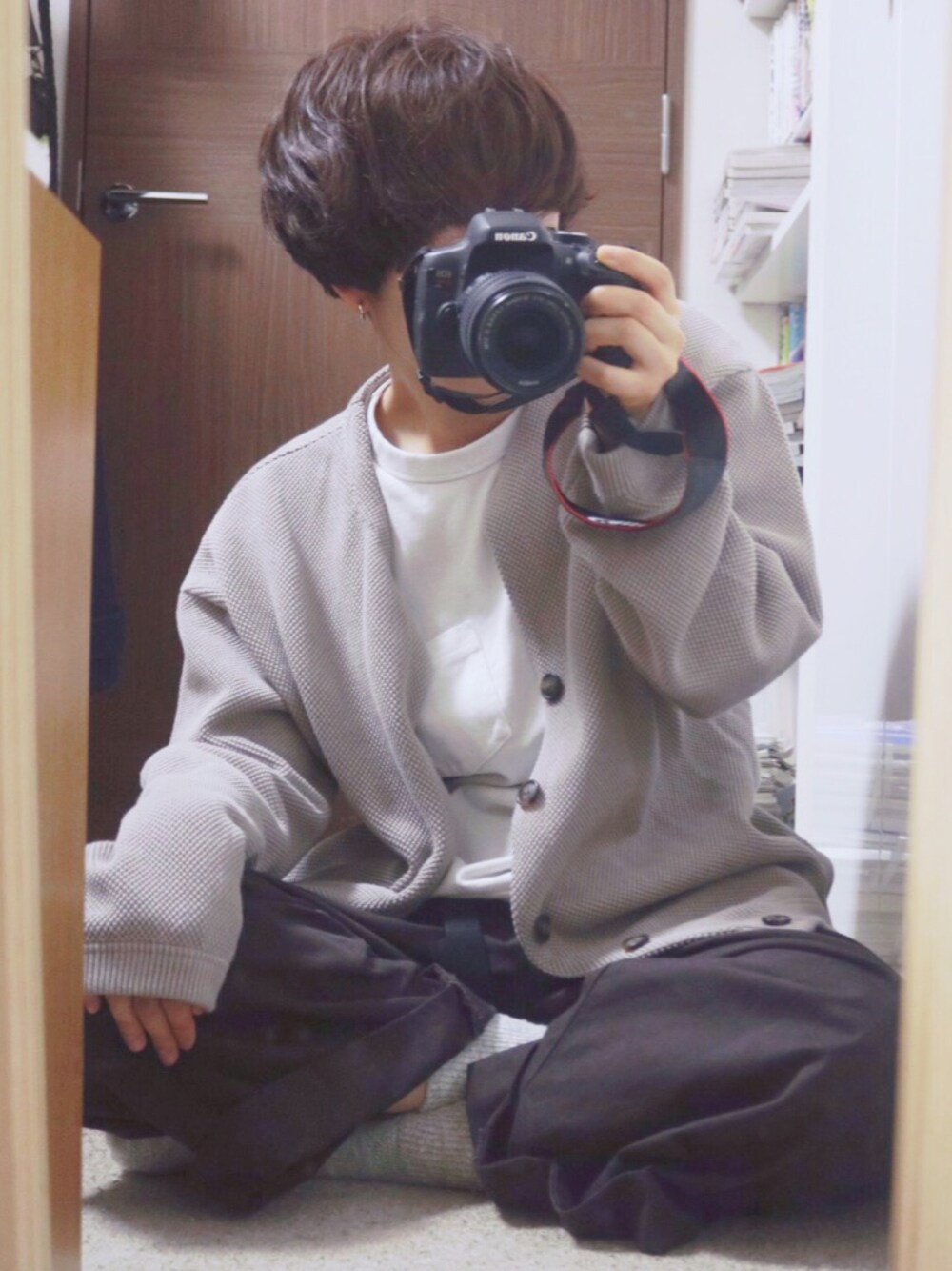 . お気に入りカーディガン🍄 ZOZOで奇跡的に買えた👏 . . カーディガンはグレージュで、 パンツはダークブラウンで なんちゃってワントーンコーデ🐻