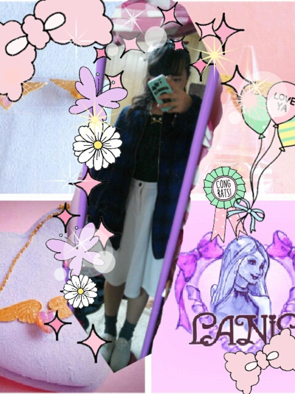 フレアスカートとに青チェックのコートを着たところ♡