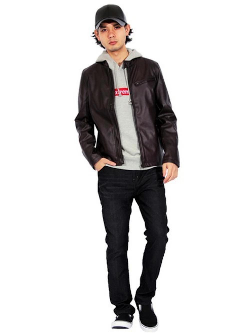 8(eight)(8(eight))のライダースジャケット「シングル ライダースジャケット PUレザー」を使ったコーディネート