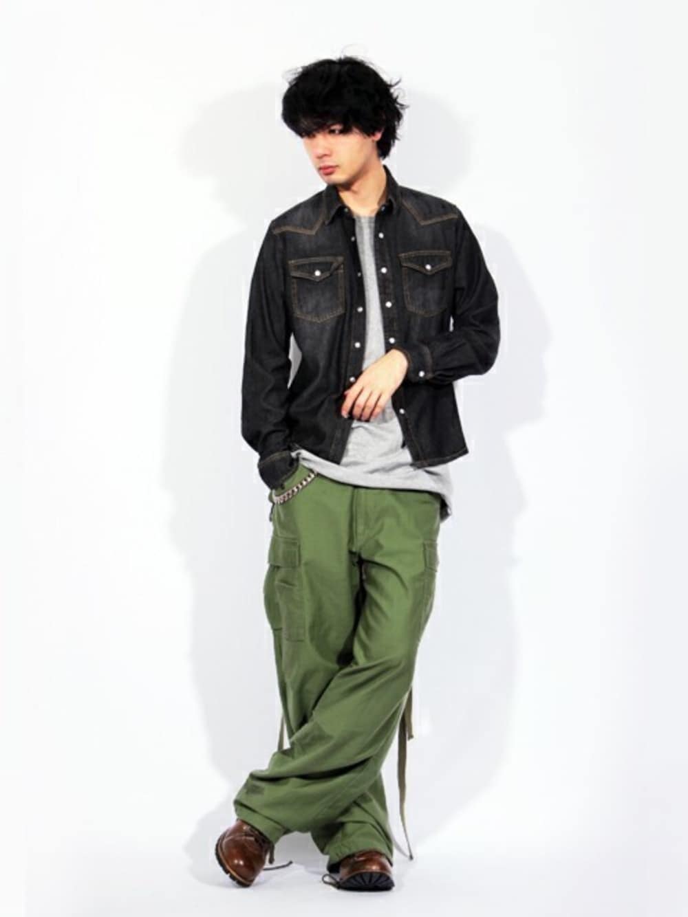 こんにちは😊お疲れ様でーす😃 いつも『いいね』ありがとうございます🙏🙏 今日はDenim×カーゴでゆるカジコーデ😎 マストアイテムのカーキのカーゴに無地Tを合わせた定番シンプルスタイルに こちらも定番なデニムウエスタンシャツをON🕺 デニムシャツはブラックを選ぶことで大人っぽい落ち付いた雰囲気を演出しています👍👍 他、スキニーやデニムonデニムなどにも使えちゃうので、一枚持っていると重宝するアイテムです👌👌 是非参考にしてみて下さいね♪ ✨よかったら、いいね・フォロー・コメントお願いします✨