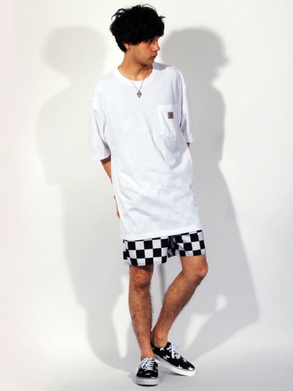 こんにちは いつも『いいね』ありがとうございます!! インパクトあるチェッカーブラッグのショートパンツ🏁に ビッグシルエットなTシャツを合わせたラフコーデ🏝 モノトーンで抑えているので子供っぽくならないところが ポイントです💡 遊び心ある星柄スニーカーもモノトーンで揃えればスッキリ✨✨ 是非参考にしてみてくださいね😌 ★よかったら、いいね・フォロー・コメントお願いします★