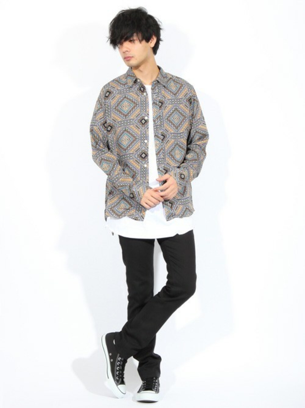 こんにちは! いつも『いいね』ありがとうございます!! 今日のコーデは大人カジュアルスタイル!! こちらの総柄シャツはやや小さめにデザインされた衿が 上品なバランスで胸元を開いて着ていただいてもダラしなくなりにくいのが特徴◎ トレンドの柄シャツをコーデに取り入れて頂くだけで いつものシンプルコーデもおしゃれな印象に!! ★よかったら、いいね・フォローお願いします★
