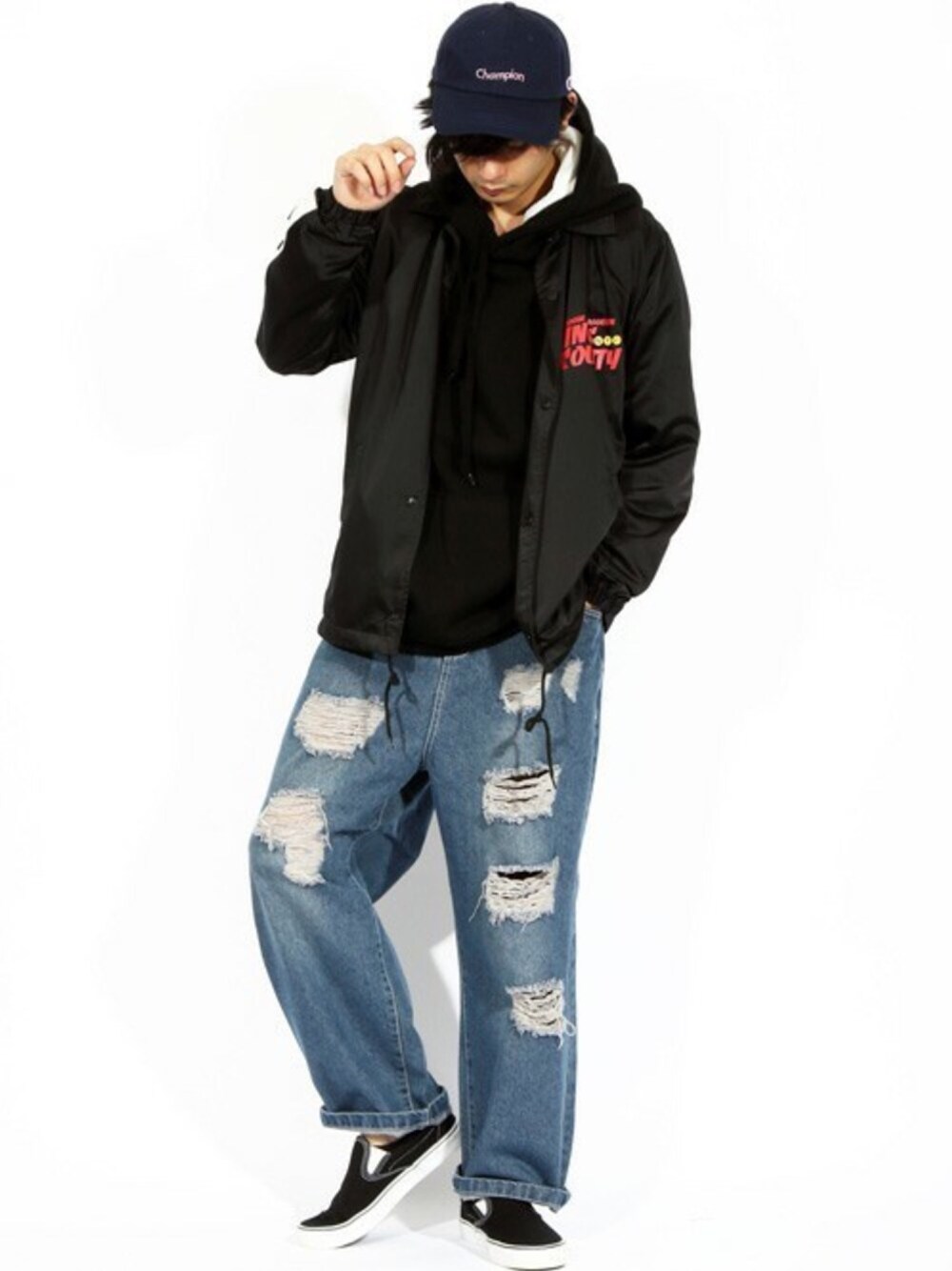 こんにちは! いつも『いいね』ありがとうございます!! 本日はデニムワイドパンツ×ビッグトップスを使用したゆるコーデ😎 今期も大注目のビッグシルエットデザインにユーズド加工とダメージ加工がこなれ感を演出します コーチジャケットを合わせればスケータースタイルが完成✨✨ ストリートやアウトドアにもおすすめです🏝🌵 是非参考にしてみてくださいね😌 ★よかったら、いいね・フォローお願いします★