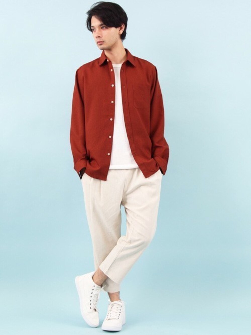 こんにちは! いつも『いいね』ありがとうございます★ 本日は大人リラックススタイルです🌈 トレンドのテラコッタ色にインナーボトムスをホワイトで揃え、2トーンスタイルにまとめた 大人っぽいスタイル🕺 ホワイトでまとめることでテラコッタ色が映える旬のコーディネートです🏝 こちらのシャツはポリエステル素材でサラッとした肌触りが着心地よく、 キレイめにもストリートコーデにも対応できる優れものです👍 是非参考にしてみてくださいね😉 ★よかったら、いいね・フォローお願いします★