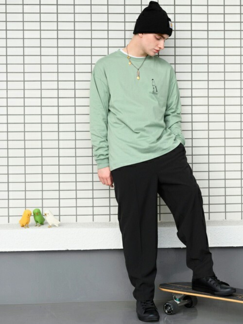 こんにちは! いつも『いいね』ありがとうございます!! 本日は今期人気のイラストTを着用したストリートスタイル♪ こちらのTシャツは程良くゆったりめにデザインされたサイズ感に、フロント・バッグにイラストタッチのプリントを施した存在感がある一着。上品あふれる仕上がりに魅了されるモードなタック入りワイドスラックスを合わせれば 今っぽさが出た旬のコーディネートの完成です。 アウターを脱げば春先先取コーデでインパクト大♪ ★よかったら、いいね・お気に入り・コメントお願いします★ Instagramもやっていますのでよかったら見に来てくださいね♪
