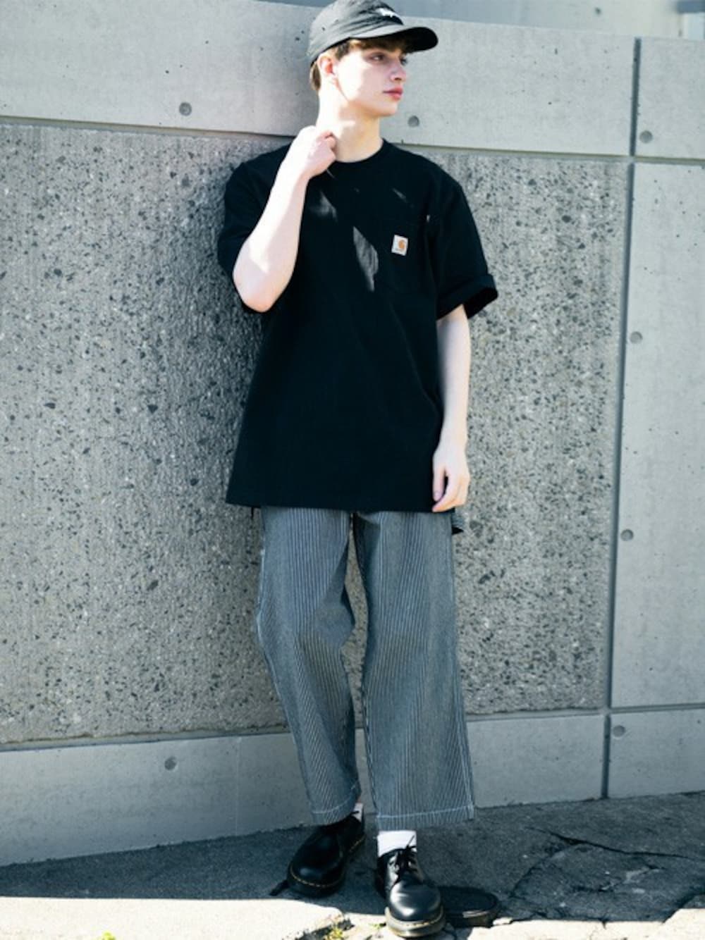 こんにちは! いつも『いいね』ありがとうございます!! 本日は大人気のヒッコリーのペインターパンツを着用したゆるコーデ♪ トップスはシンプルながら左胸の『carhartt』のロゴが存在感ある1枚手元にあれば季節を問わず重宝するTシャツです。 ボトムスは柔らかく肌触りの良い コットン100% の生地を採用し、穿くほどに馴染みます。ハンマーループ サイドのパッチポケット 存在感ある ホワイトステッチ、大き目のポケット等 細部にまでこだわったデザインです。 ★よかったら、いいね・お気に入り・コメントお願いします★ Instagramもやっていますのでよかったら見に来てくださいね♪