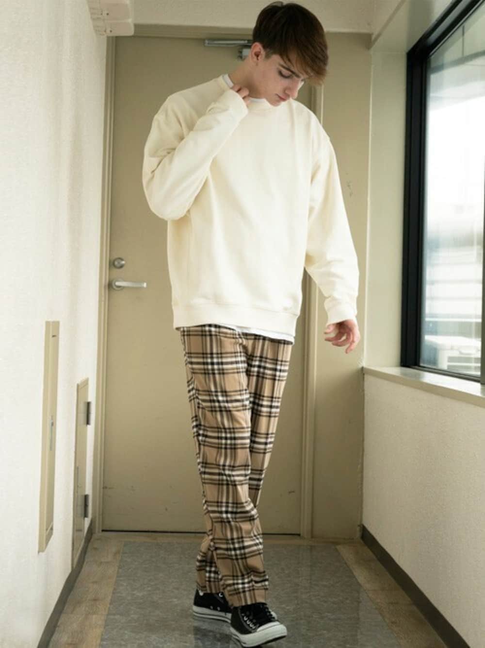 秋を感じるチェックボトムススタイル ■TOPS シンプルスウェット ■BOTTOMS チェックテーパード モードなタック入りワイドパンツ ■SHOES converse ■いいね・フォロー・コメントお願いします■