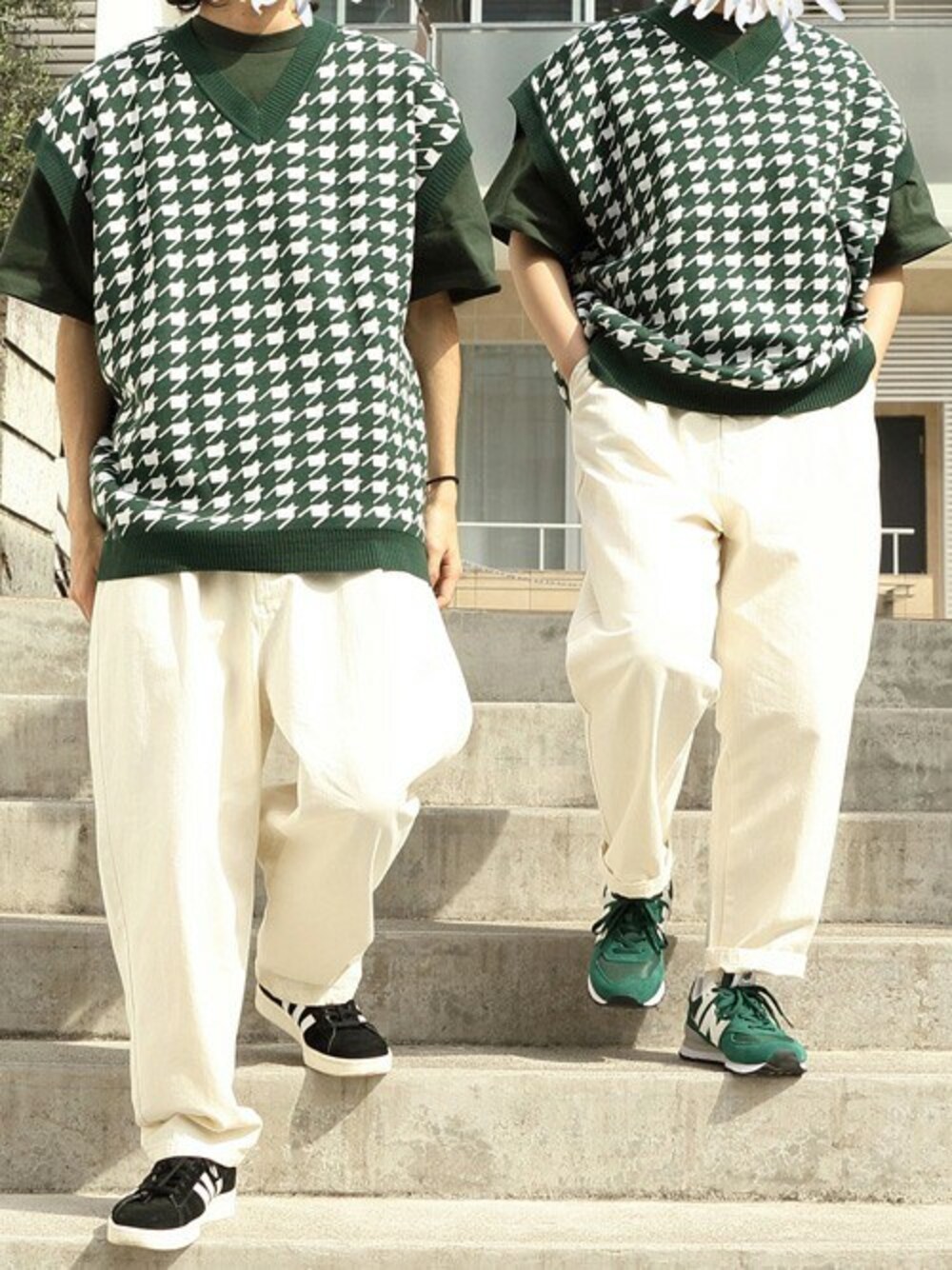 8(eight)(8(eight))のベスト「ジャガード千鳥柄ニットベスト」を使ったコーディネート