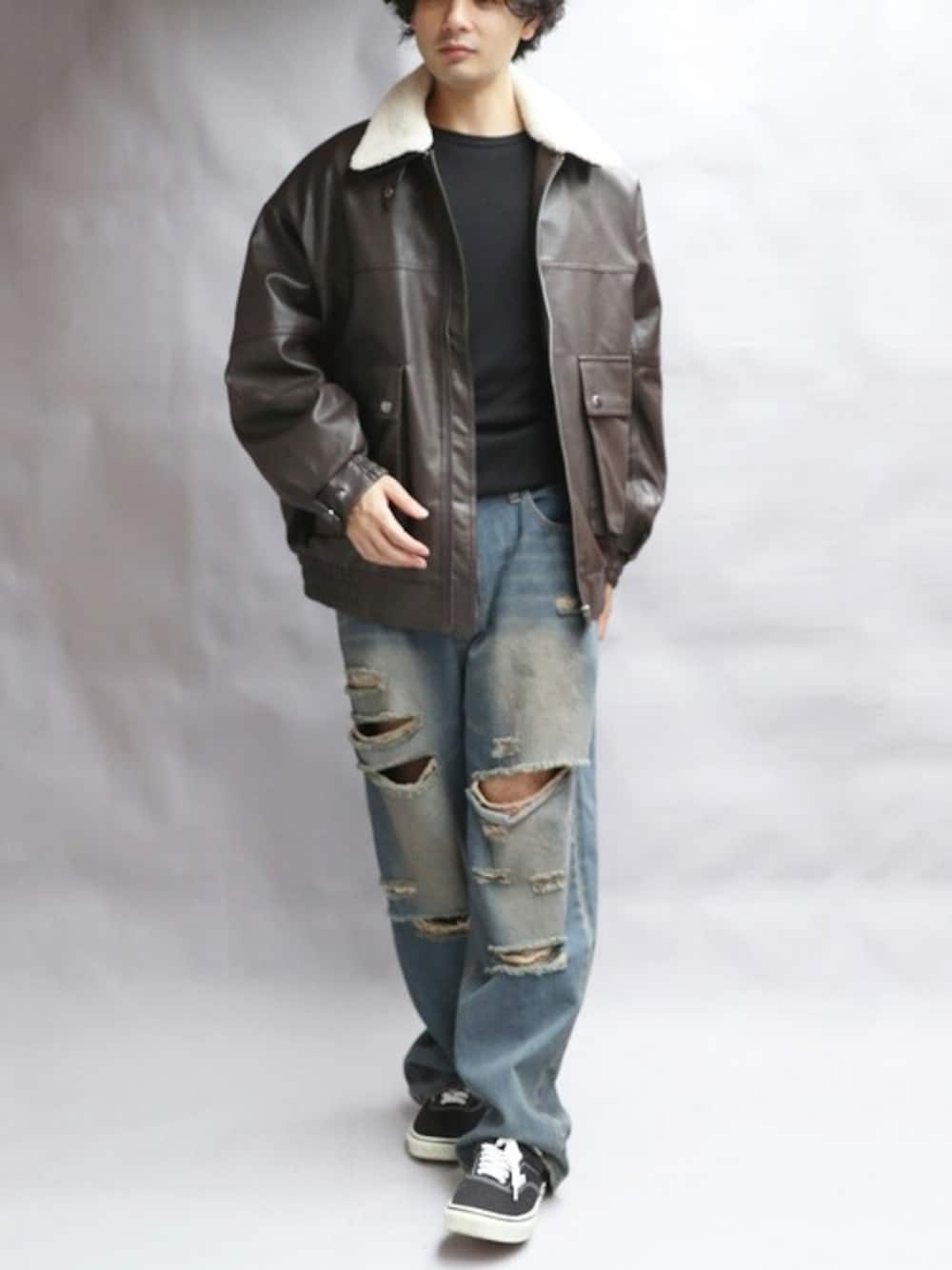 8(eight)(8(eight))のブルゾン「ボア襟G1PUレザーブルゾン」を使ったコーディネート